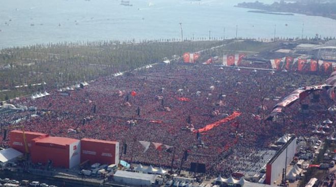 Miting için İstanbul’un iki yakasında bir günde 480 bin yolcunun seyahat ettiği Marmaray yolcu rekoru kırdı. 29 Ekim 2013 tarihinde hizmete giren Marmaray ile bir günde en fazla 200 bin yolcu seyahat etmişti.