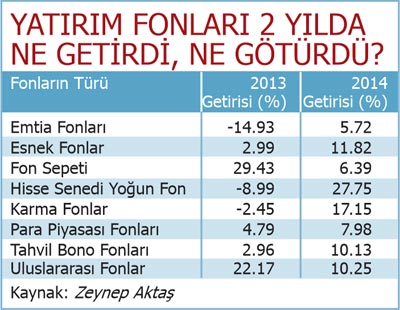 2014 yılında borsada hisse senetlerinin fiyatı arttı. Bu nedenle 2013 yılında zarar eden fon katılım belgesi sahipleri 2014 yılını yüksek getiri ile bitirdi.